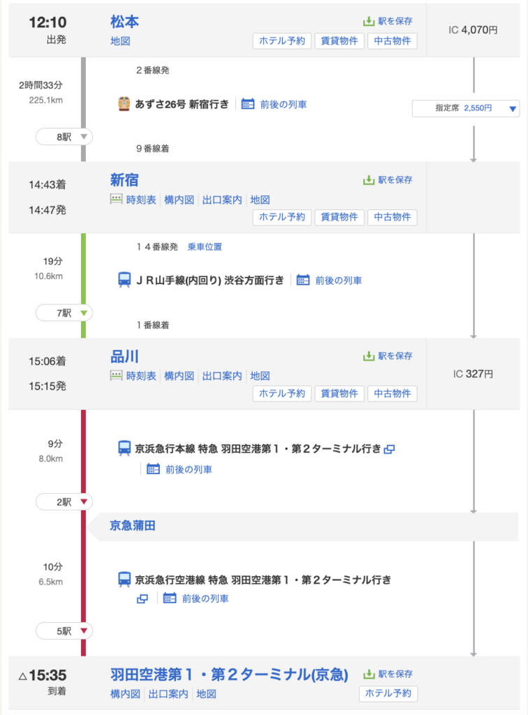 松本駅→羽田空港